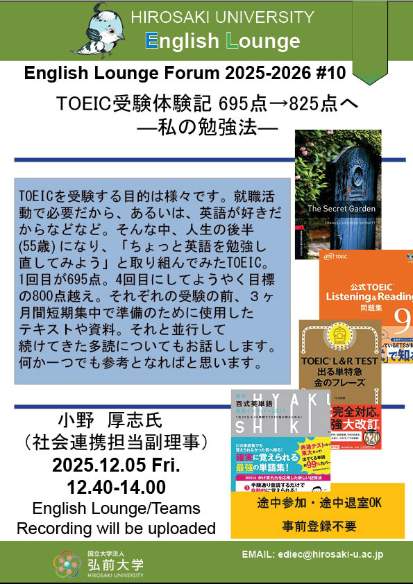 2025 English Lounge Forum #10 TOEIC受験体験記 695点 → 825点へ ―私の勉強法―